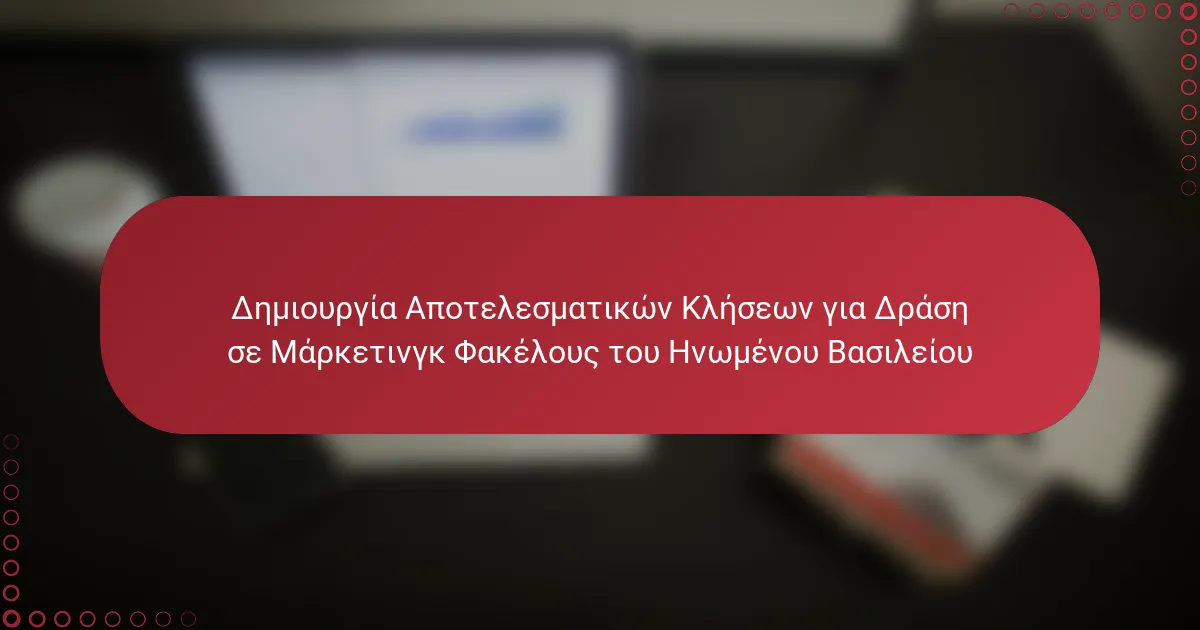 Οι αποτελεσματικές προσκλήσεις για δράση (CTAs) στα μάρκετινγκ του Ηνωμένου Βασιλείου είναι κρίσιμες για να καθοδηγήσουν τους δυνητικούς πελάτες προς τις επιθυμητές ενέργειες. Οι καλύτερες πρακτικές εστιάζουν στη σαφήνεια, τη στρατηγική τοποθέτηση, τη δελεαστική γλώσσα και την αίσθηση του επείγοντος για να ενισχύσουν τα ποσοστά μετατροπής.